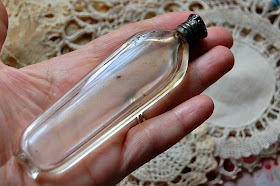 Swoon! I mouthed a silent OOHHH, when I spied this on a stall. The leather case is so old and worn, it had to be something good inside... and there was, a beautiful little parfum bottle with the sweetest silver top and tiniest glass stopper -