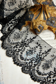 The first layer in the box was pieces of the finest, daintiest Napoleon III era black lace, so very delicate and somewhat ravaged by time, but beautiful nonetheless -